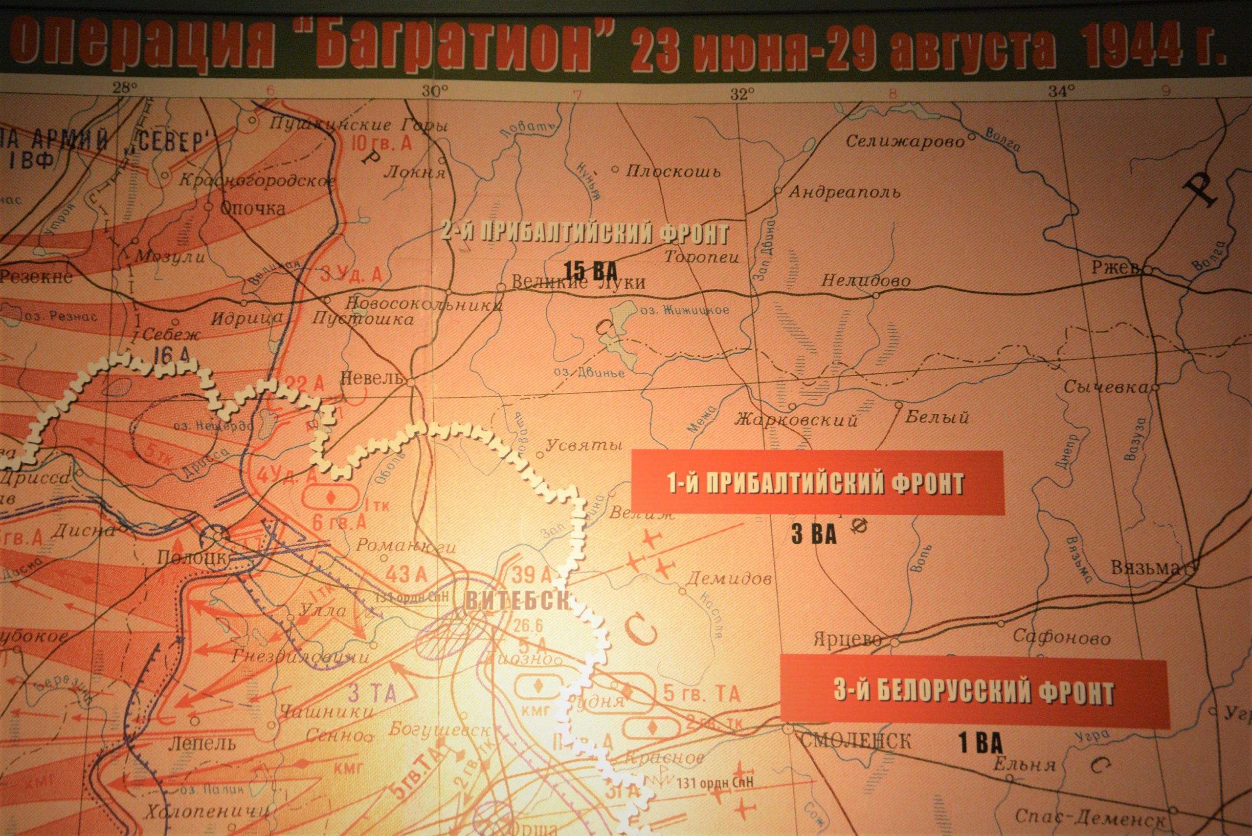 ეს ყველაფერი პირველიდან ბოლო სართულამდე თანმიმდევრულადაა გამოფენილი – დამთვალიერებელი მეორე მსოფლიო ომთან გაცნობას 1941 წლის 22 ივნისის ამბებით და ოპერაცია ბარბაროსას დიდი რუკით იწყებს. შემდეგ, გზადაგზა, სხვა მოვლენებს იხსენებს – ბელარუსის პირველ და მეორე ფრონტს, მოსკოვზე იერიშს, ბალტიისპირეთში განვითარებულ ამბებს, ოპერაცია ბაგრატიონს და რამდენიმე თვეზე გაშლილ სტალინგრადის სისხლისმღვრელ ბრძოლას…
