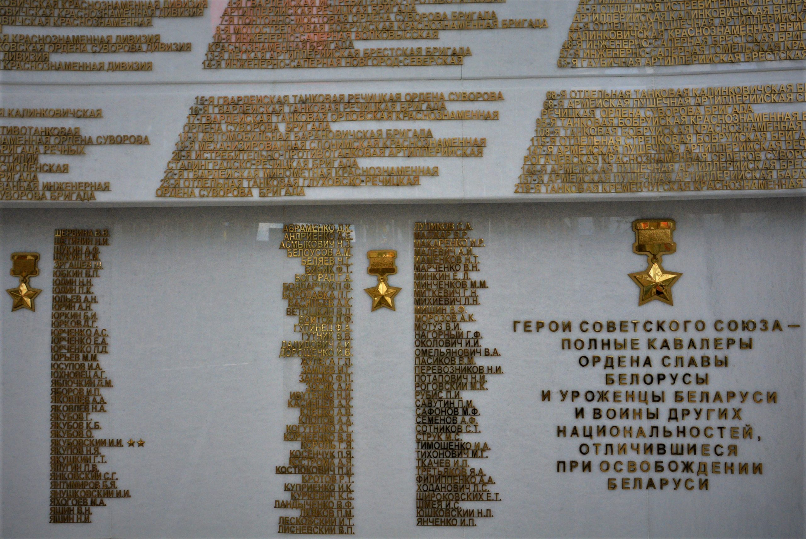 იმ კედლებს ბელარუსის ფრონტში მონაწილე ბრიგადების, ბატალიონების და დიდი თუ პატარა სამხედრო შენაერთების ჩამონათვალიც ამშვენებს.
