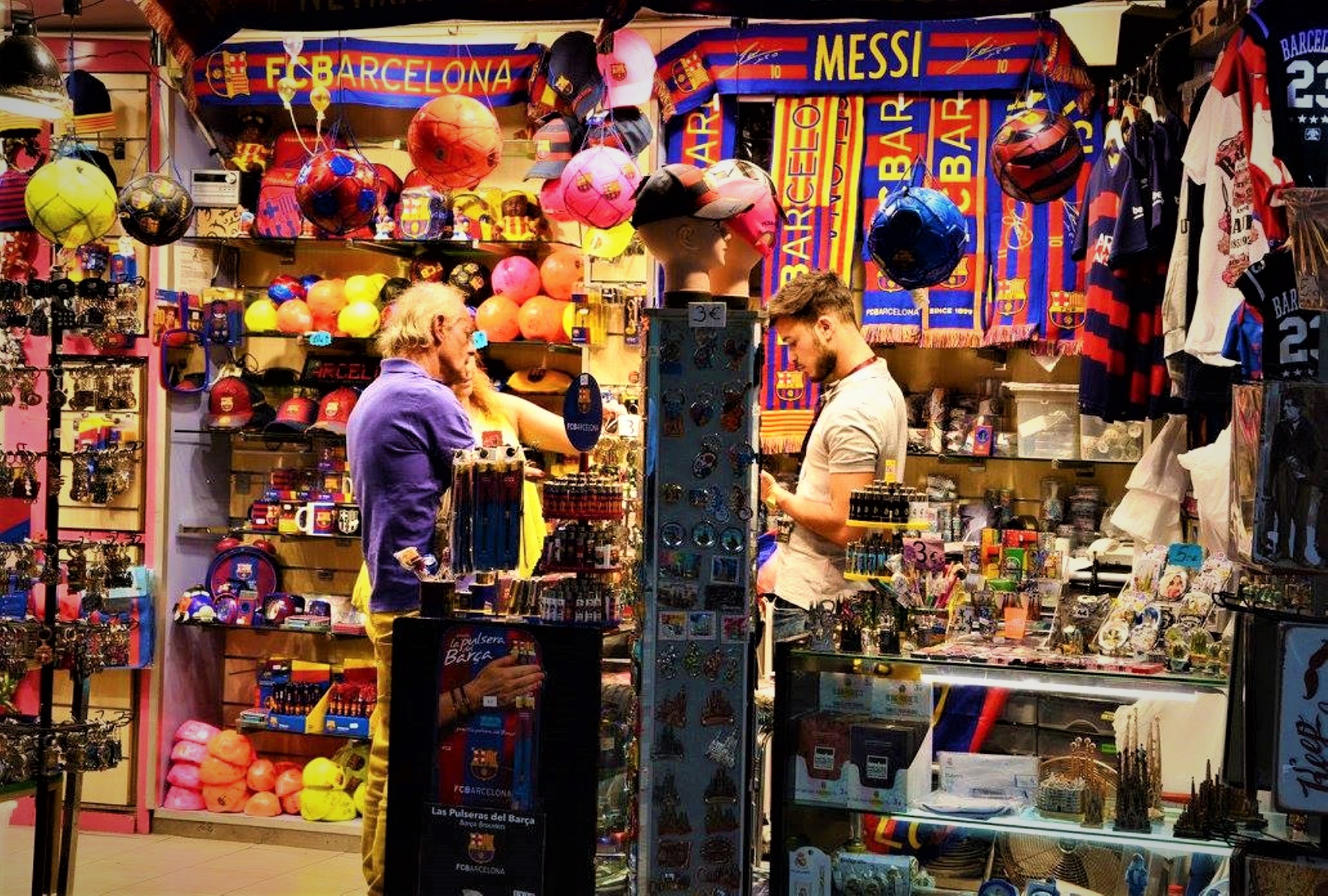 უცნაურია, მაგრამ ფაქტია: ბარსელონის ნომერ პირველი მტრის მადრიდის რეალის ოფიციალური საკლუბო მაღაზია სწორედ რამბლაზეა. არ დავმალავ, ძალიან გამიკვირდა ვიტრინებში რეალის ქათქათა მაისურები და ჩემპიონთა თასის ასლები რომ დავინახე.