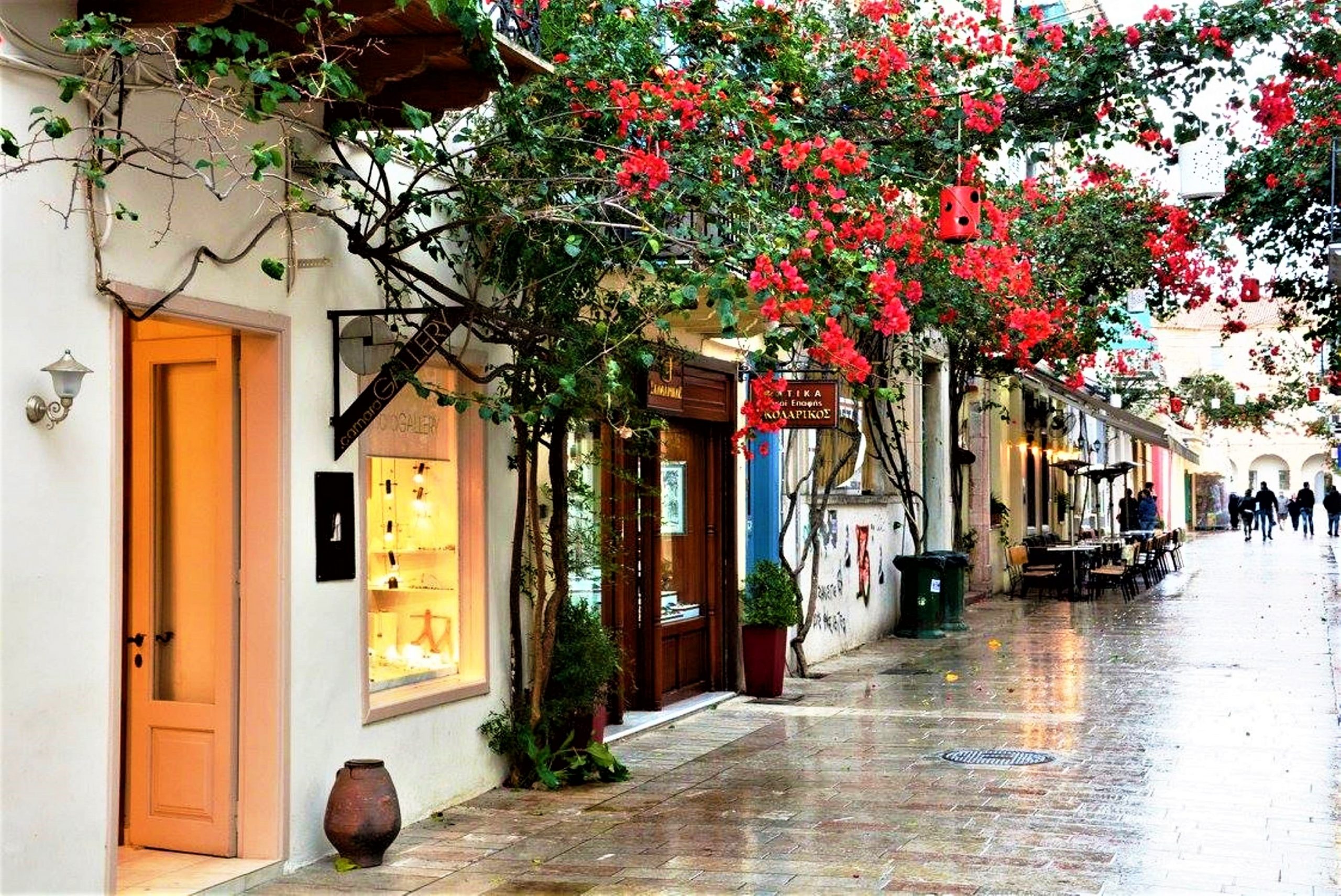 ის იყო ციხესიმაგრე მოვიარეთ და დაბლა, ქალაქში დავეშვით, რომ წვიმამაც დასცხო. ბედად, ერთი კოხტა ბერძნული ტავერნაც იქვე იყო და იქაურობას დიდი სიამოვნებით შევაფარეთ თავი…