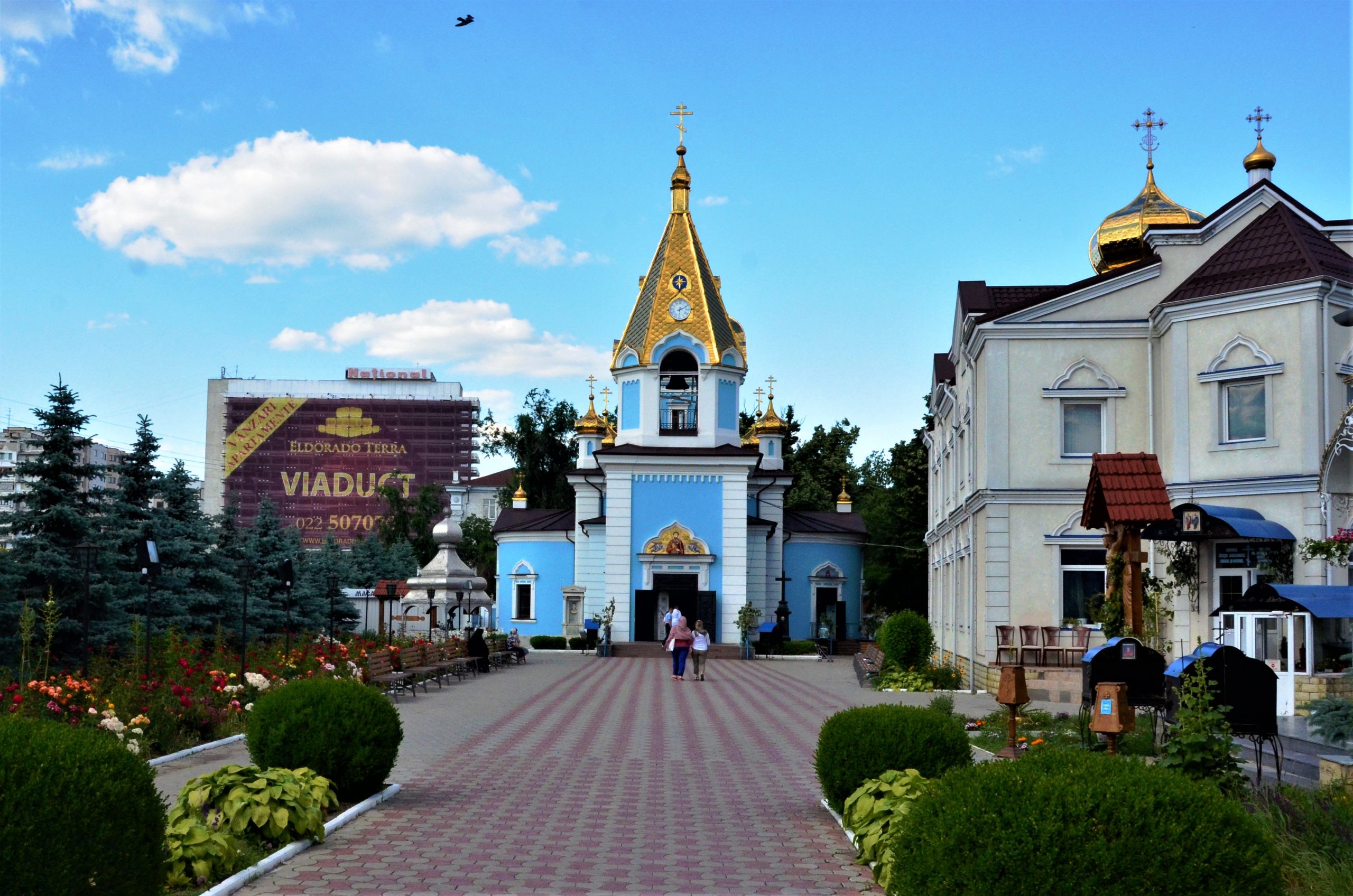 ყველაზე ძალიან მწვანეში ჩაფლული ცენტრალური სკვერი მომეწონა, მის შუაგულში მდგარ ტაძარშიც შევედი – ნათლობას შევესწარი, გარეთ გამოსულს კი პარკთან რაღაც საპროტესტო აქცია დამხვდა – დემონსტრანტები მოლდოვის დროშის ფრიალით გაჰყვიროდნენ რაღაცას და თან ლუდს გეახლებოდნენ.