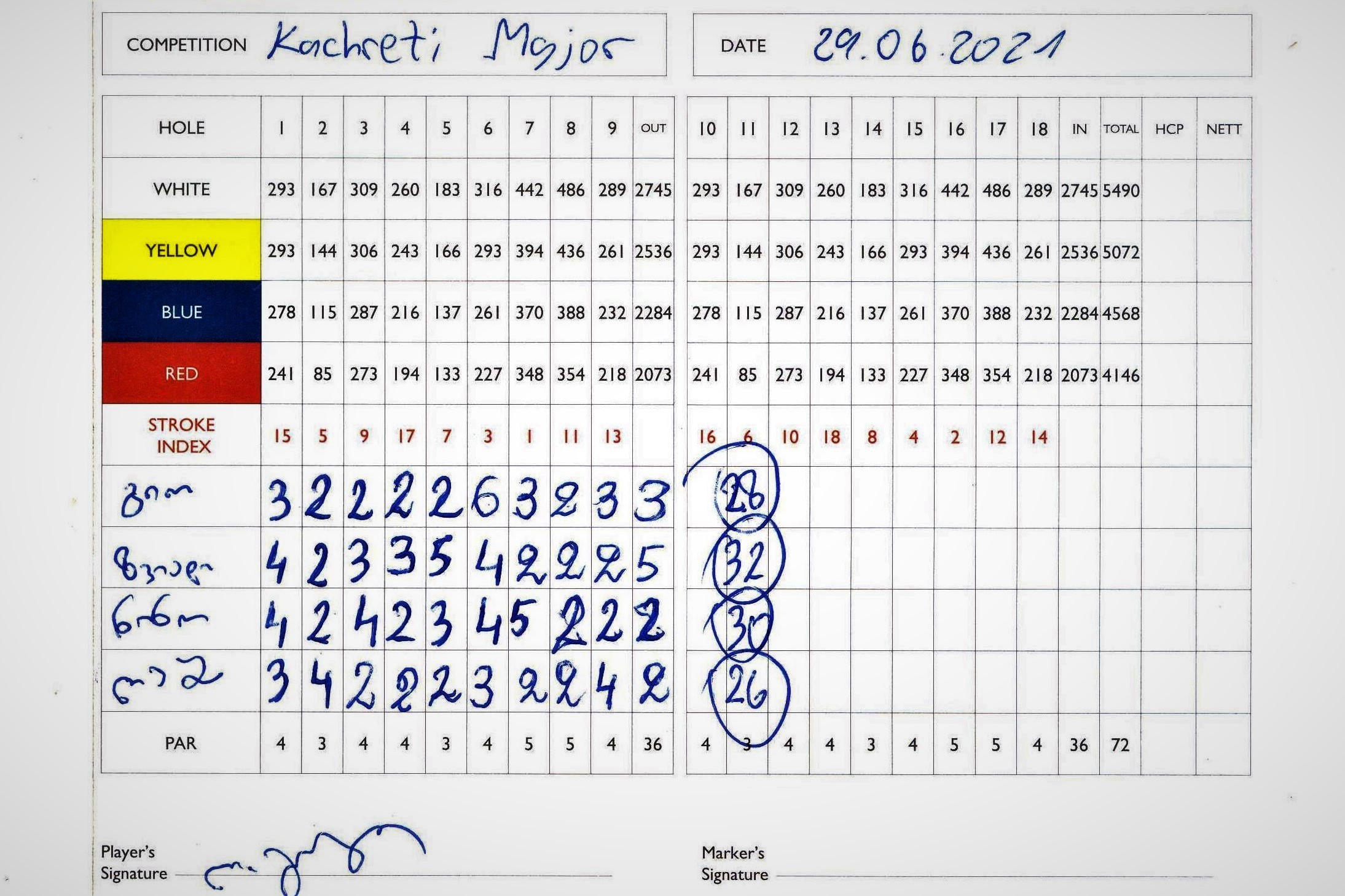 მესამედ კი გოლფი 29 ივნისს, კაჭრეთის ამბასადორში ვითამაშე მეუღლესთან ერთად და ამჯერად ცოტას წავიტრაბახებ: მე ვაჟებში გავიმარჯვე, ნინომ – გოგონებში.