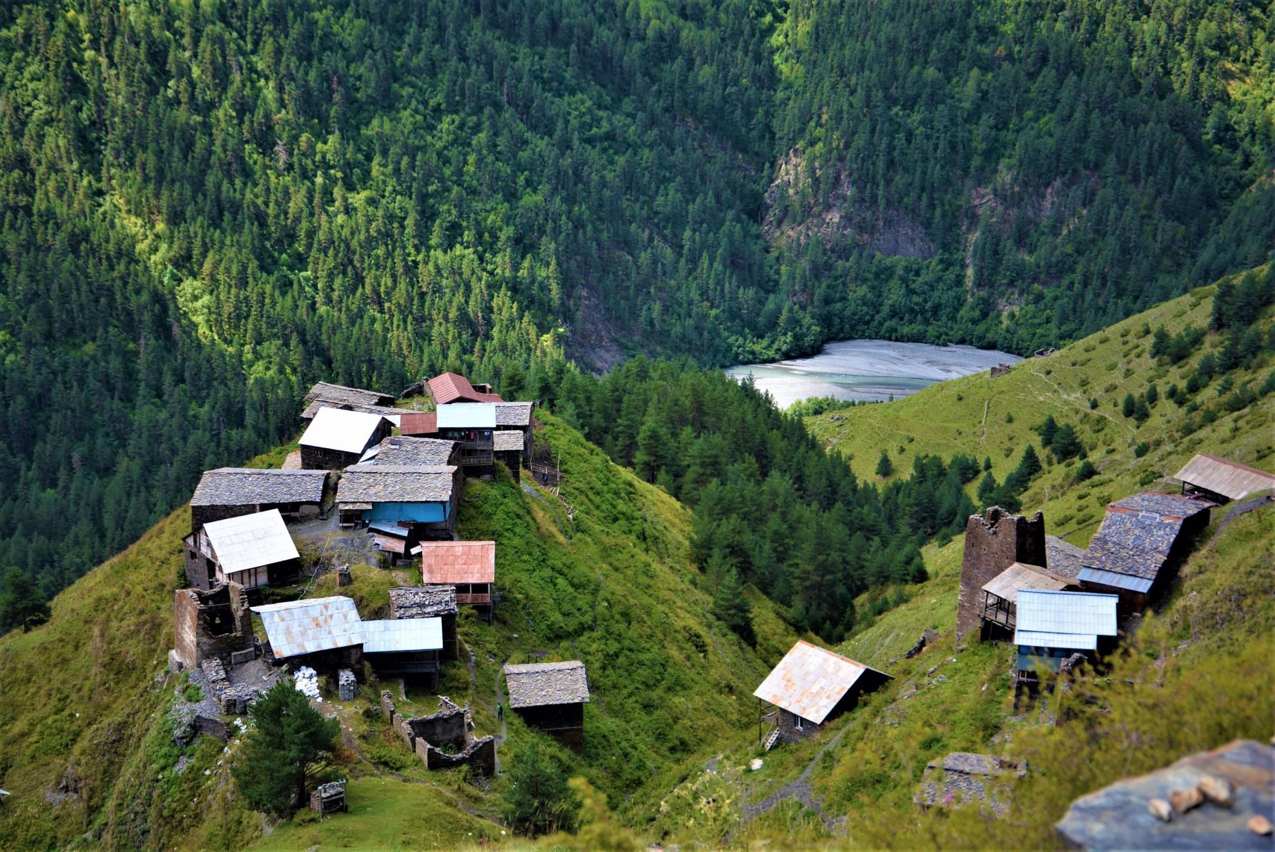 ჩვენმა მეგზურმა მიშამ გვითხრა, რომ სამუშაოდ წასული მშობლები ბავშვებს სახლებში აბამდნენ უფროსების გარეშე დარჩენილი და თამაშით გართული პატარები ხევში რომ არ გადავარდნილიყვნენ. ვისაც დოჭუ უნახავს, არ მშობლების ეს ნაბიჯი არ გაუკვირდებათ – იქ ეზო, როგორც ასეთი, არსადაა. ერთი სახლი მეორეს გვერდით დგას, რამდენიმე მეტრში კი, როგორც გითხარით, უშველებელი ვარდნილებია.