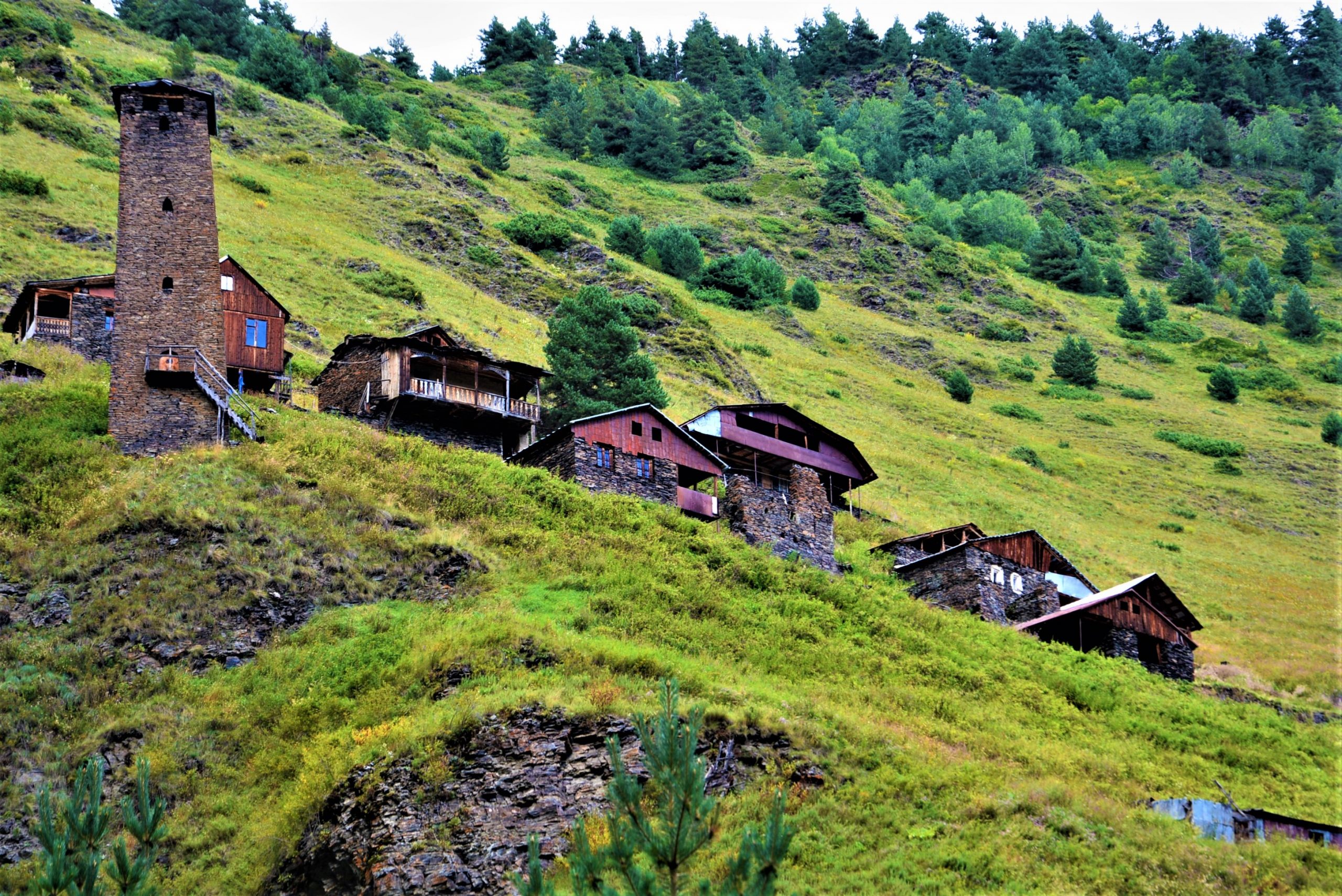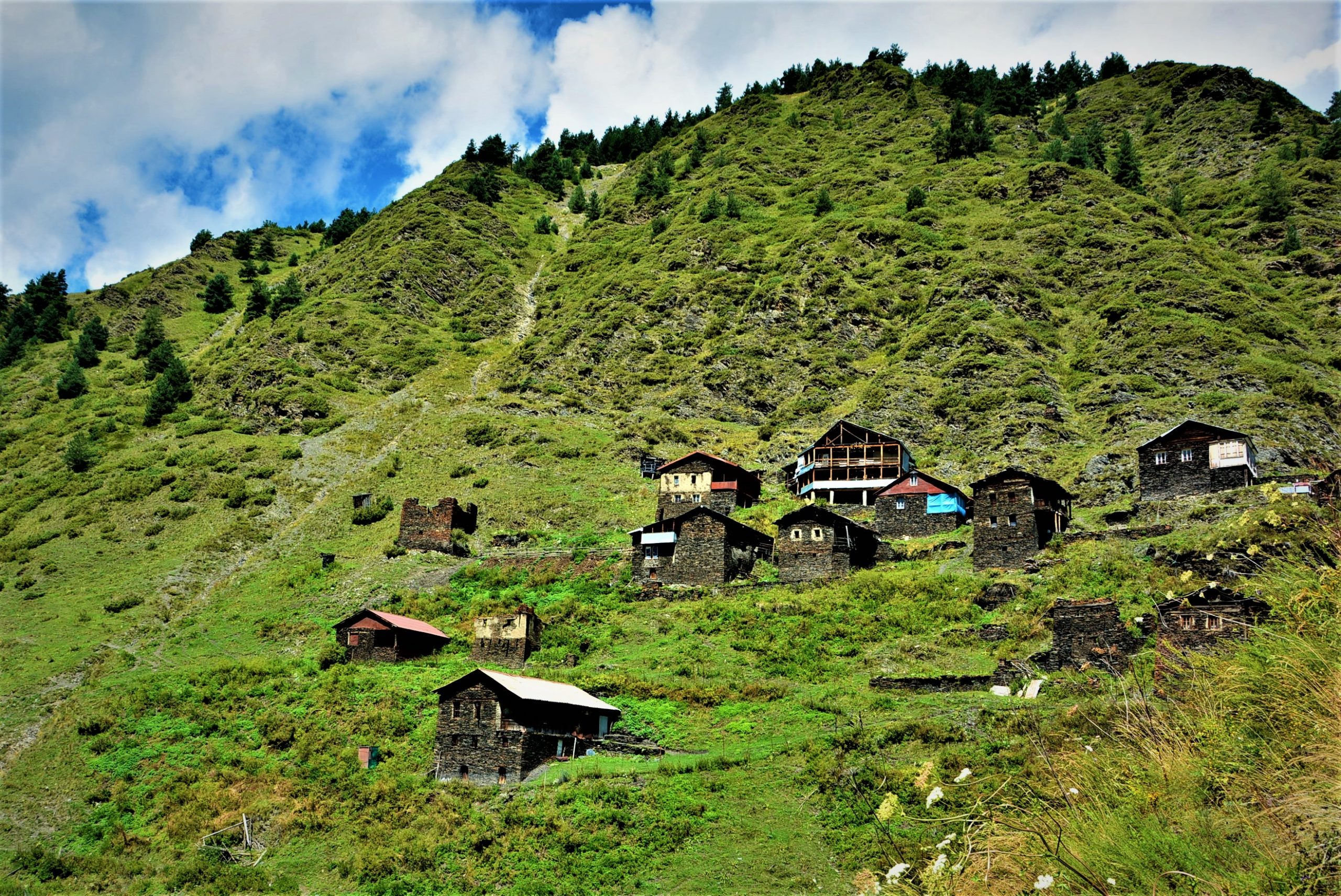 დოჭუში, ისევე როგორც თუშეთის ბევრ სოფელში, ადგილობრივები მხოლოდ სეზონზე ადიან. სხვა დროს იქაურობა მიტოვებულია. და ეს კოშკებს და სახლებს ეტყობა კიდეც: უმეტესობა ჩამონგრეულია და მე თუ მკითხავთ, დიდი დღე არ უწერია. კი, ჩვენი იქ ყოფნის პერიოდში ადგილობრივები საშენ მასალას ეზიდებოდნენ, მაგრამ რა ვიცი, რა ვიცი…