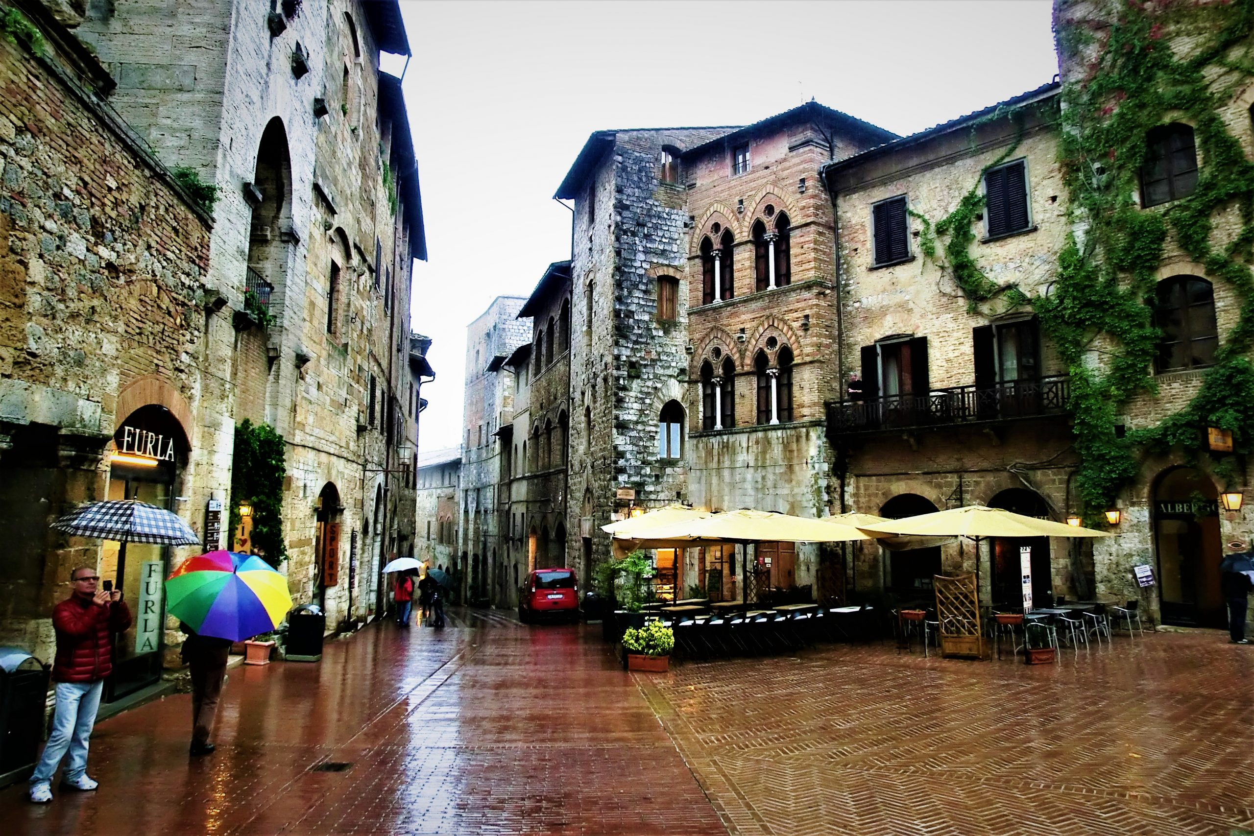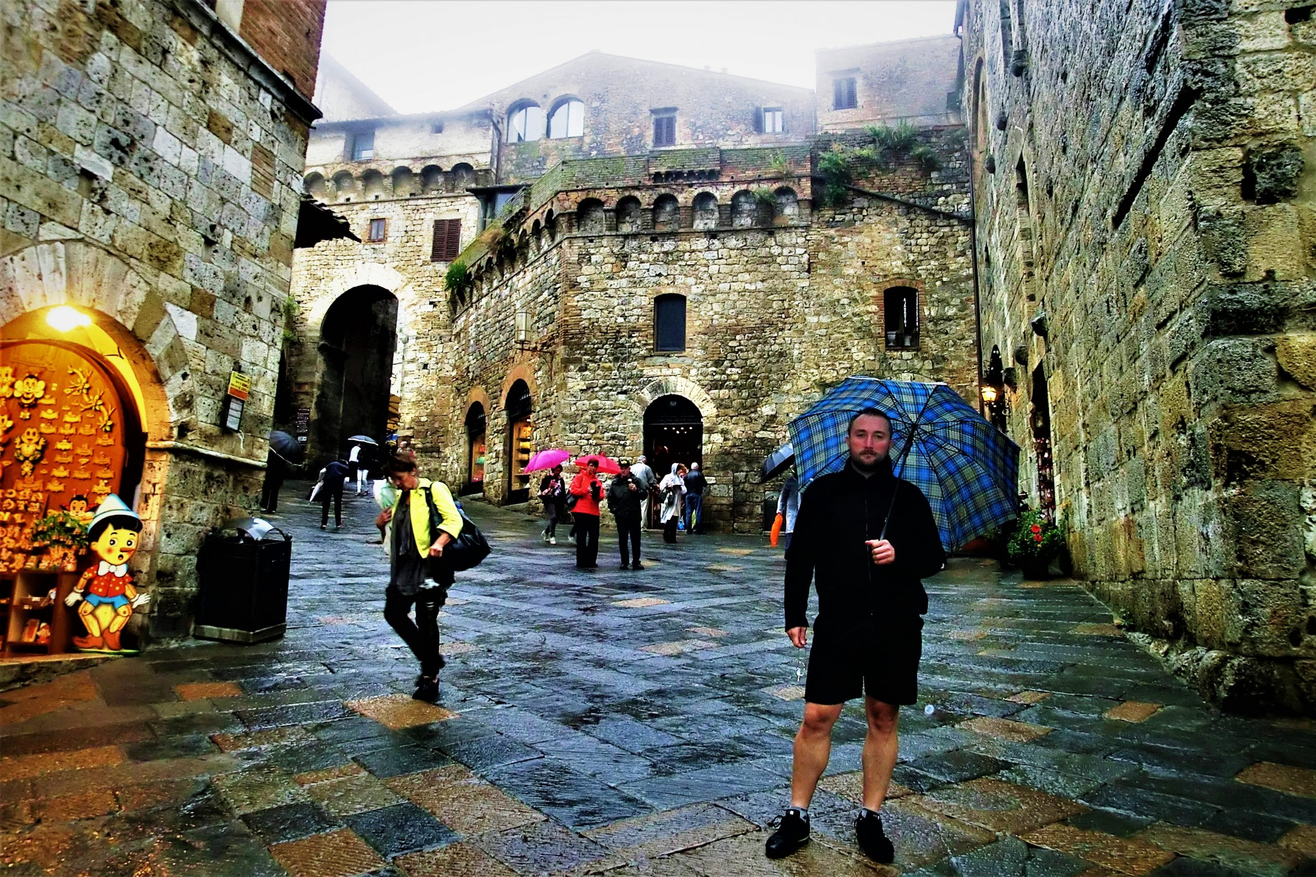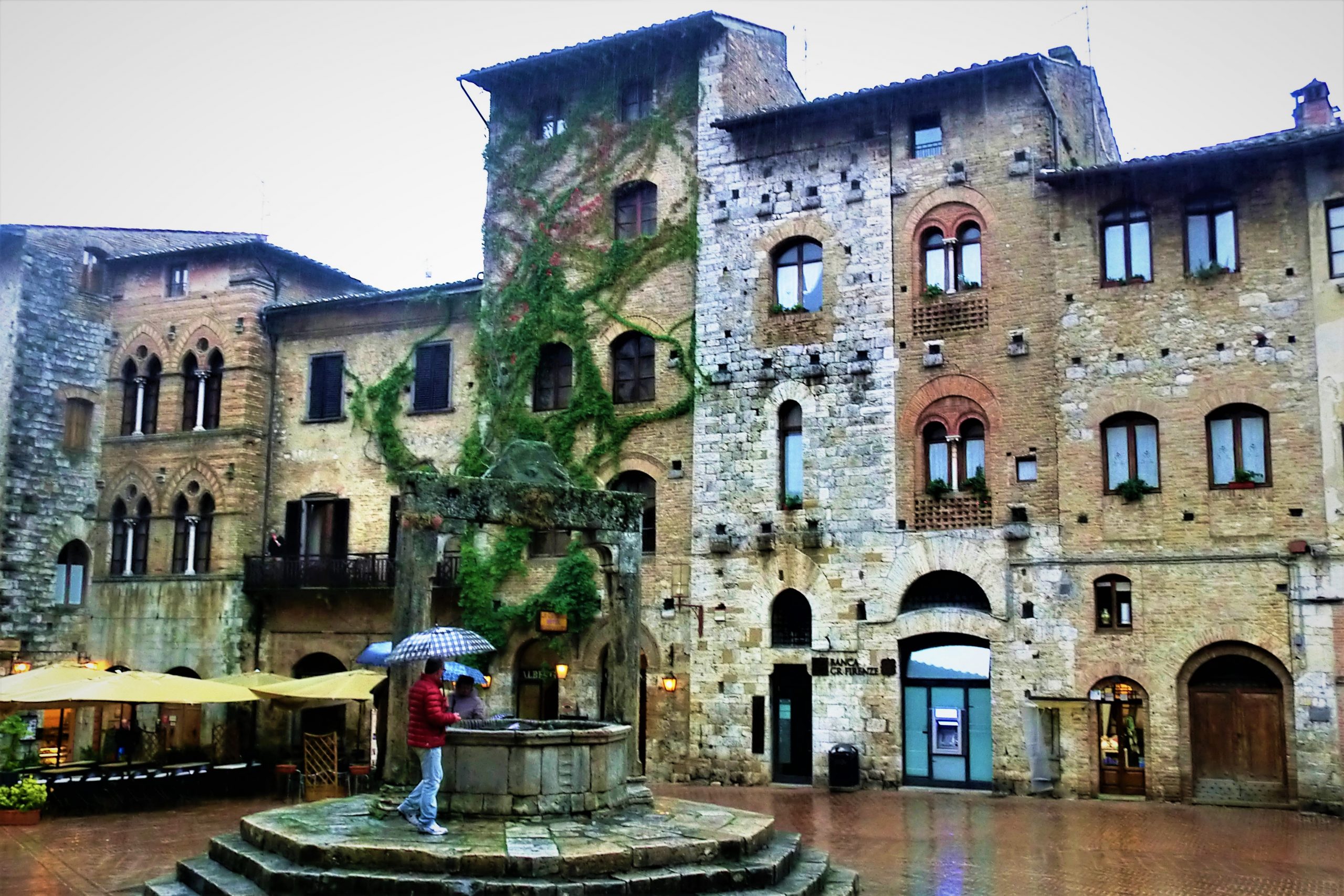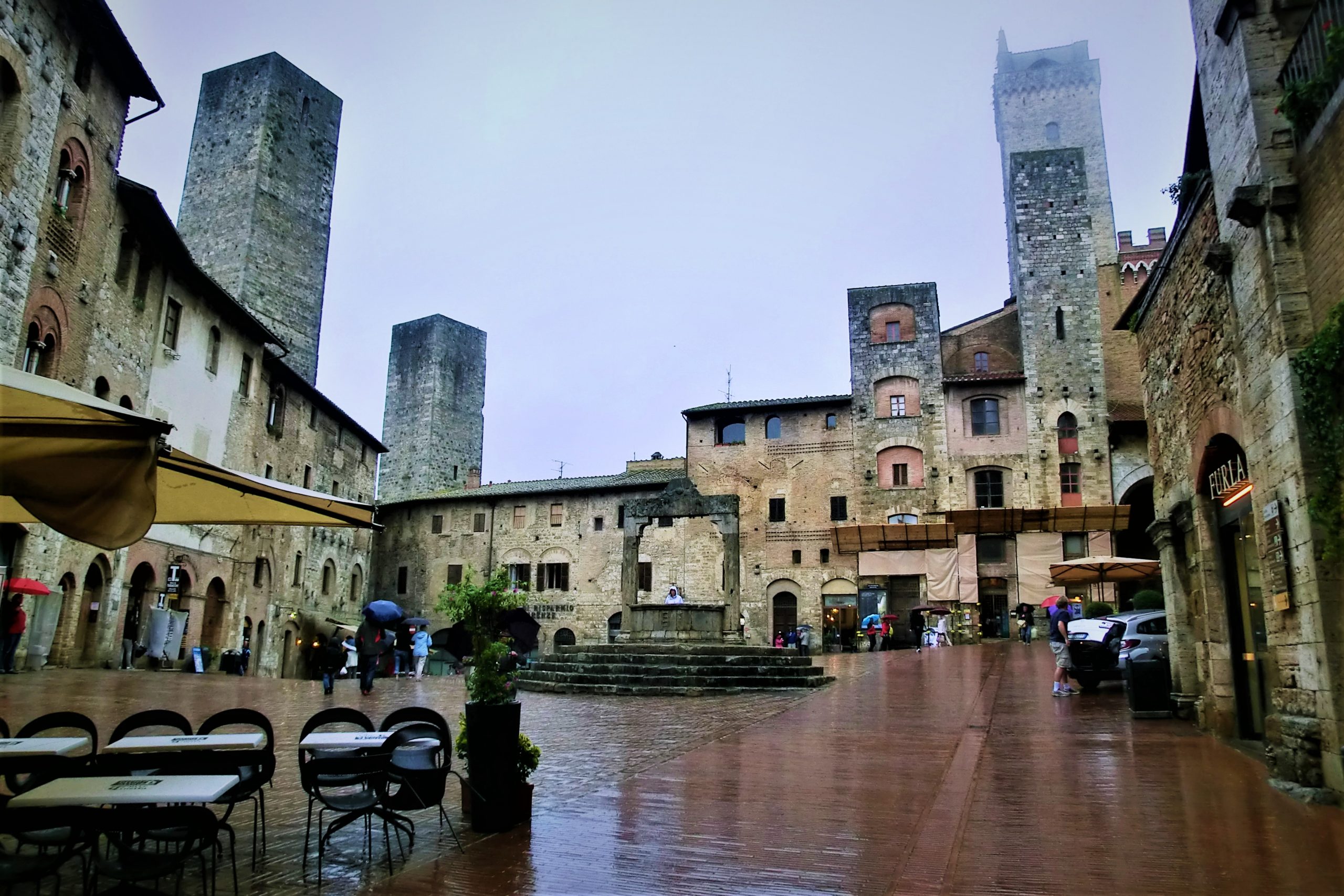იმ წუთებში, როცა სან ჯიმინიანოს მთავარ მოედანზე ქოლგით ხელში დავაბიჯებდი და ნისლში ჩაფლულ ამ პატარა და კოშკებიანი ქალაქის ცენტრს ვათვალიერებდი, გავიფიქრე, რომ იქ ფილმის, უფრო სწორად კი ფენტეზის ჟანრის ფილმის გადაღება დიდებული იქნებოდა.