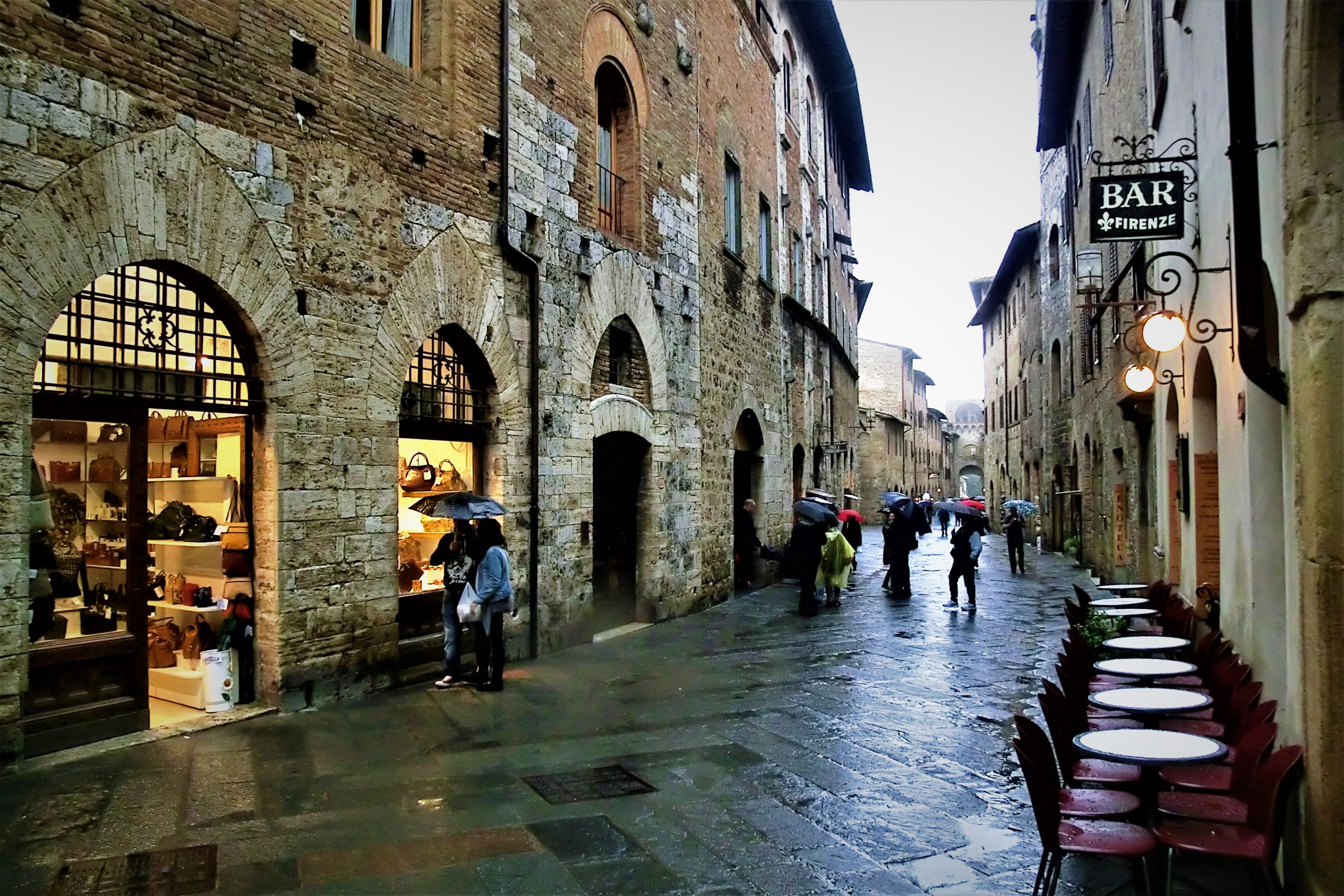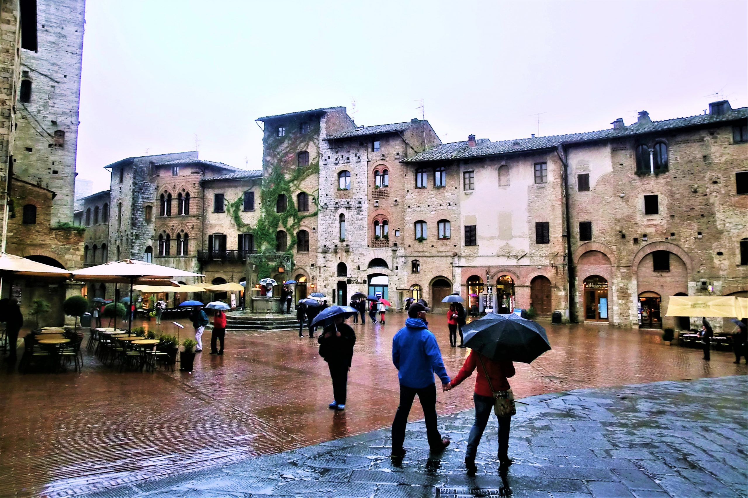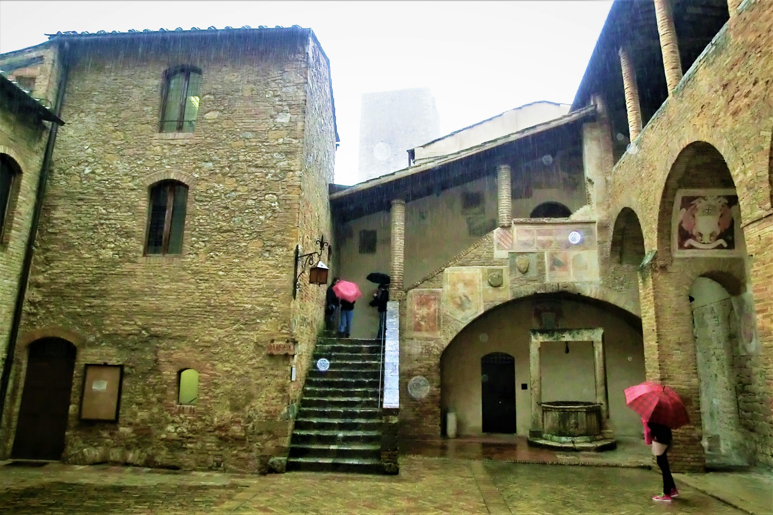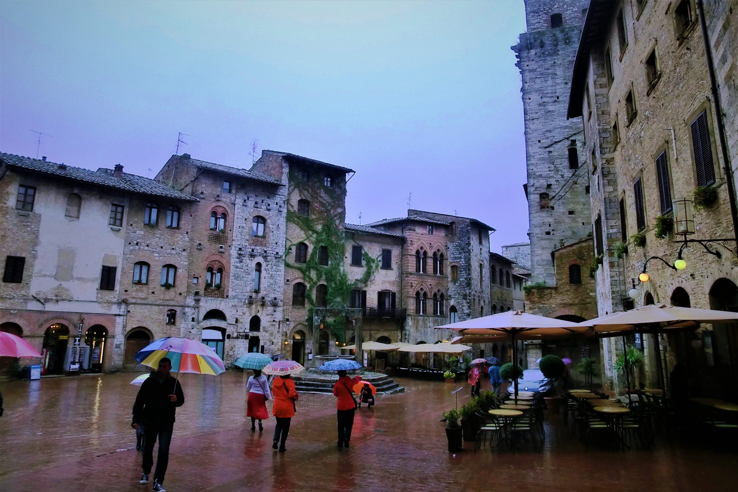 იმ წუთებში, როცა სან ჯიმინიანოს მთავარ მოედანზე ქოლგით ხელში დავაბიჯებდი და ნისლში ჩაფლულ ამ პატარა და კოშკებიანი ქალაქის ცენტრს ვათვალიერებდი, გავიფიქრე, რომ იქ ფილმის, უფრო სწორად კი ფენტეზის ჟანრის ფილმის გადაღება დიდებული იქნებოდა.