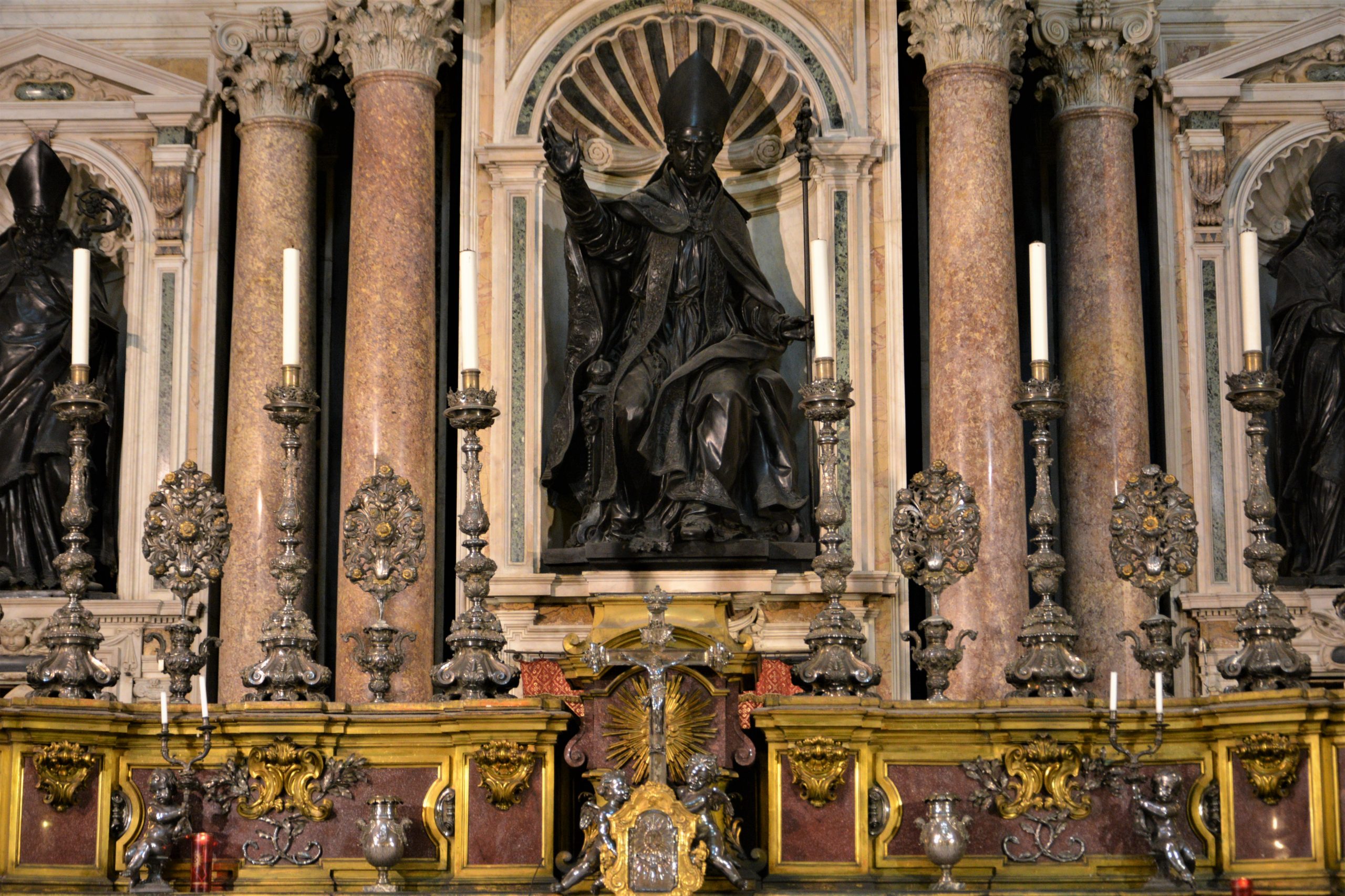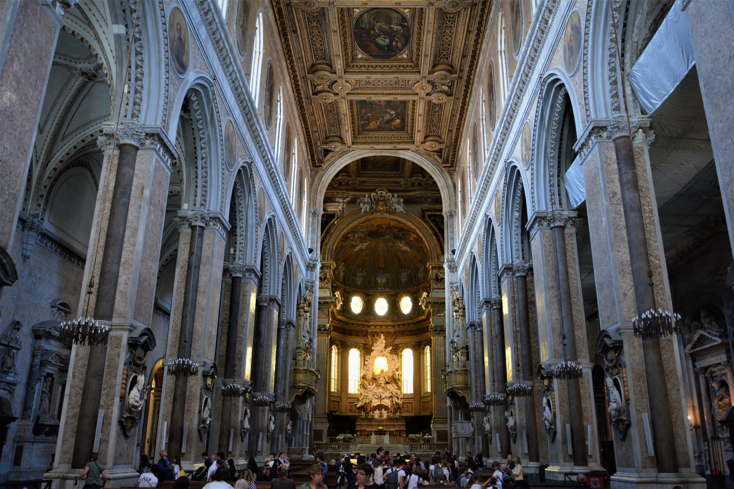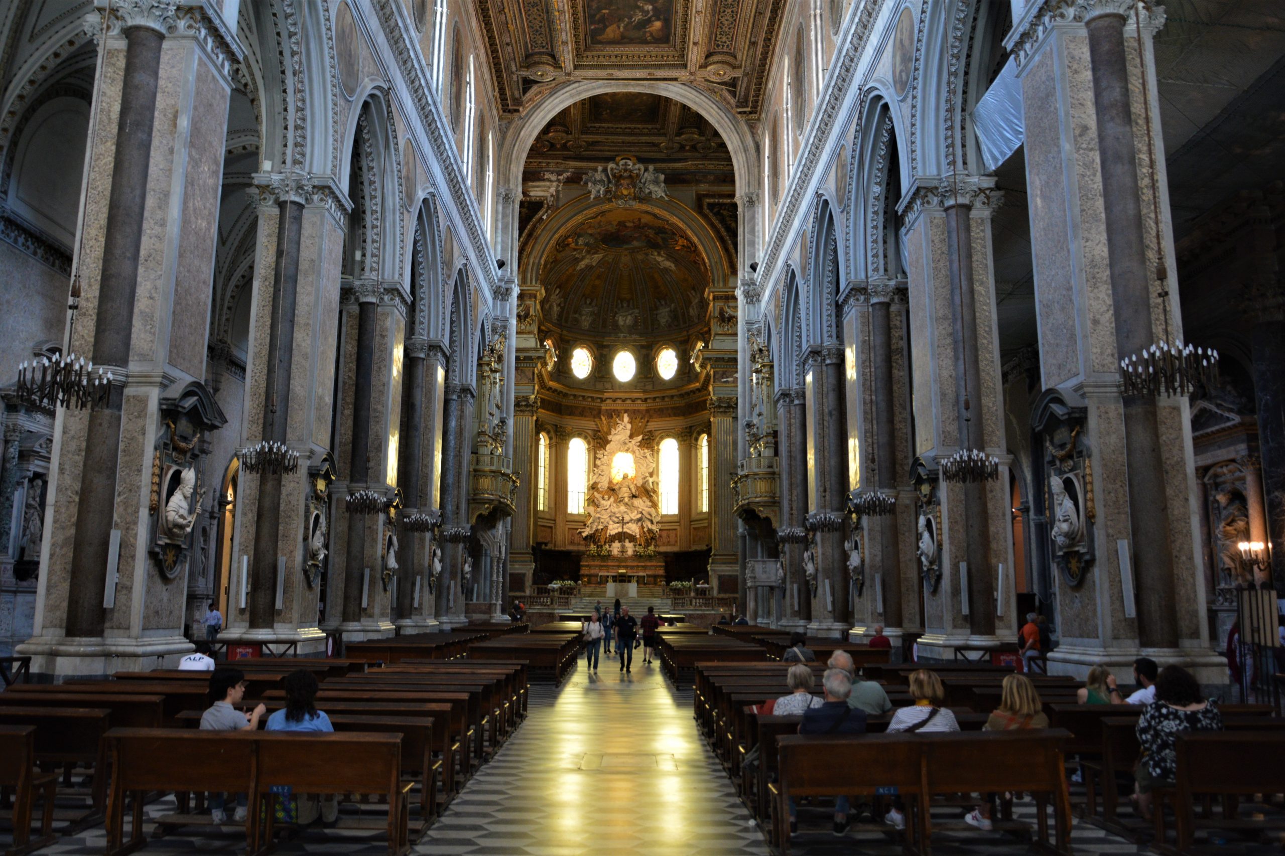 განსაკუთრებით საკურთხეველი მომეწონა, უბრალოდ დიდებული იყო! ასევე ბაპტისტერიუმი, რომელიც ტაძრის ჩრდილოეთ ნაწილშია განთავსებული, ხოლო სამხრეთში წმინდა იანუარიუსის განძის ნაწილია გამოფენილი – ოქრო, ვერცხლი ბრინჯაო, ძვირფასი თვლებით შემკობილი ნაკეთობები… როცა ტაძარში შევედი, საცავის დიდი შავი ალაყაფი დაკეტილი დამხვდა. გული დამწყდა, მაგრამ სანამ ტაძარი მოვიარე, საათზე მეტი კი გავიდა და ზედ წამოსვლის წინ მცველმა ის რკინის კარებიც გაგვიღო, მობრძანდით, დაათვალიერეთო, გვიხმო ფოტოაპარატ და ტელეფონმომარჯვებულ ტურისტებს.