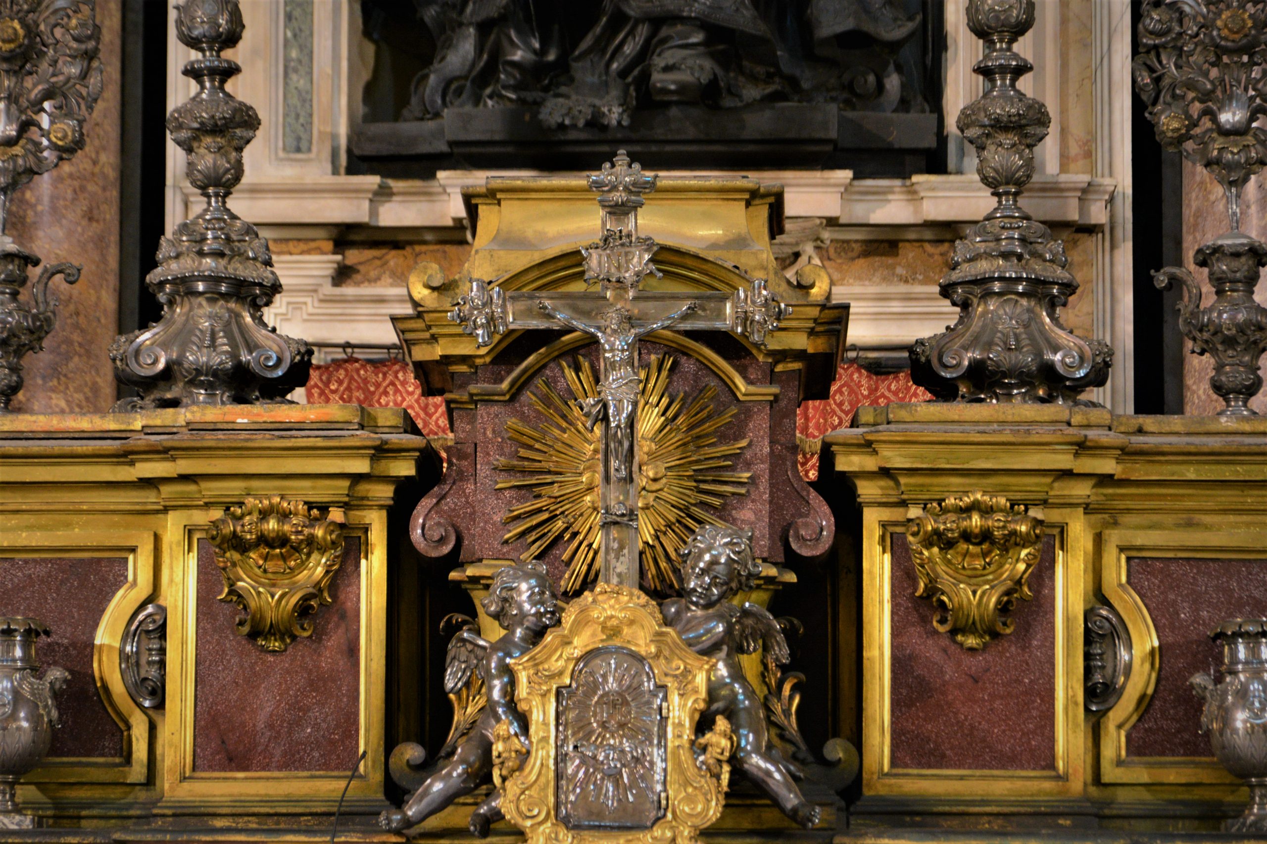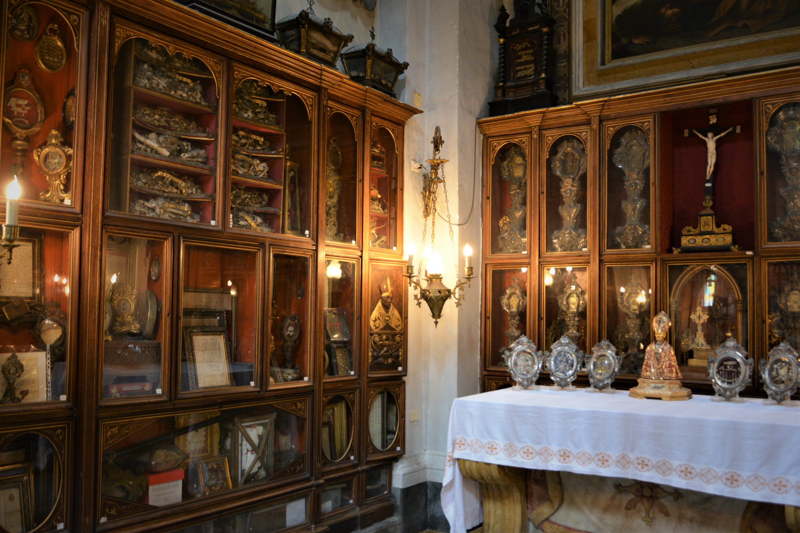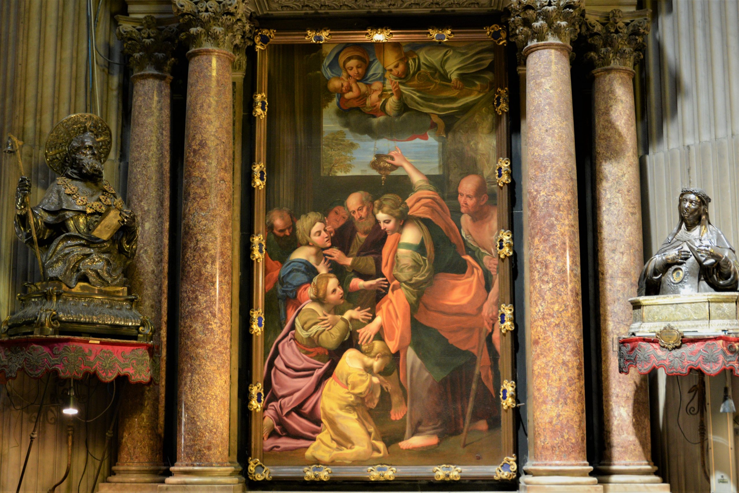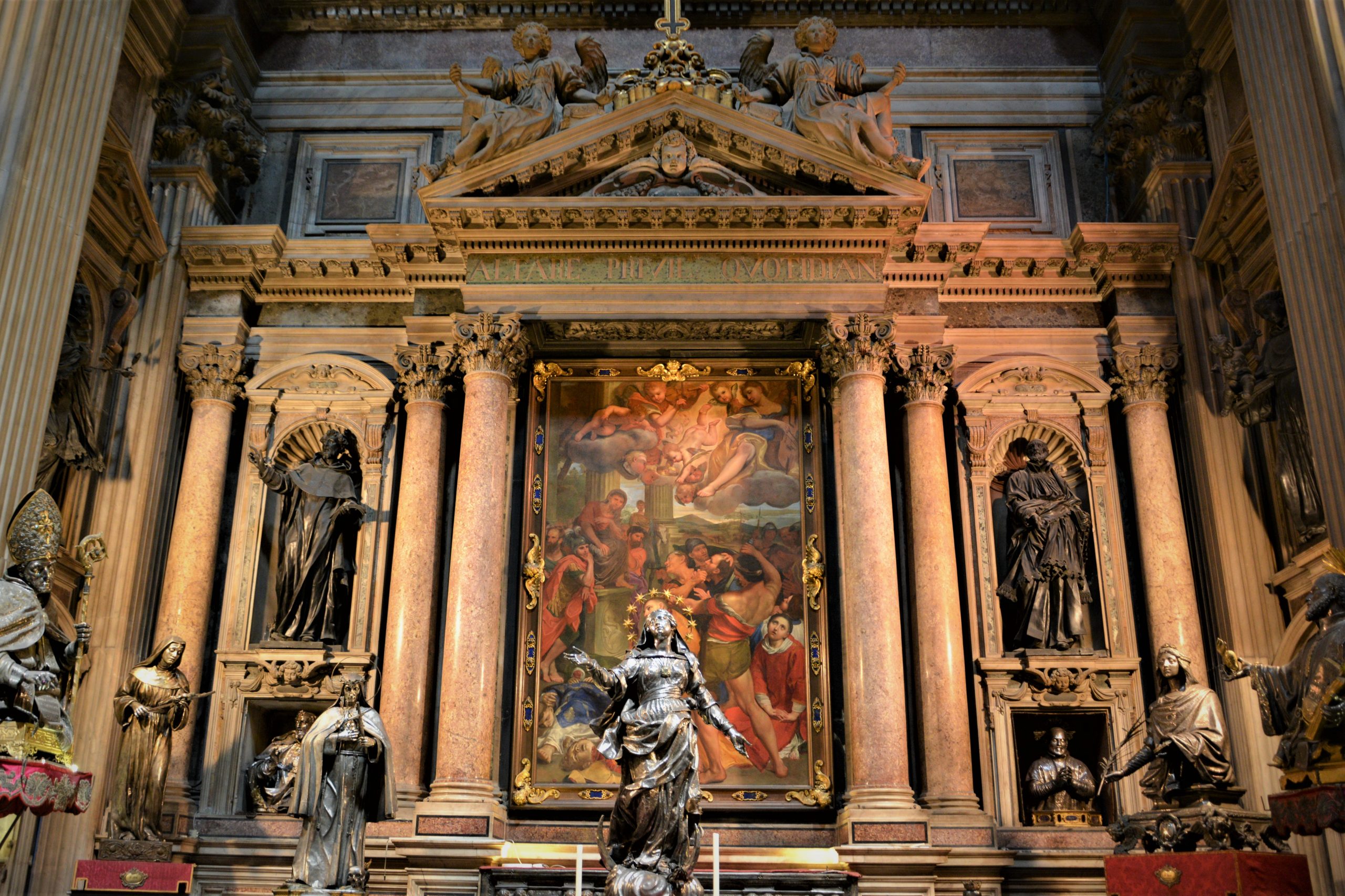 განსაკუთრებით საკურთხეველი მომეწონა, უბრალოდ დიდებული იყო! ასევე ბაპტისტერიუმი, რომელიც ტაძრის ჩრდილოეთ ნაწილშია განთავსებული, ხოლო სამხრეთში წმინდა იანუარიუსის განძის ნაწილია გამოფენილი – ოქრო, ვერცხლი ბრინჯაო, ძვირფასი თვლებით შემკობილი ნაკეთობები… როცა ტაძარში შევედი, საცავის დიდი შავი ალაყაფი დაკეტილი დამხვდა. გული დამწყდა, მაგრამ სანამ ტაძარი მოვიარე, საათზე მეტი კი გავიდა და ზედ წამოსვლის წინ მცველმა ის რკინის კარებიც გაგვიღო, მობრძანდით, დაათვალიერეთო, გვიხმო ფოტოაპარატ და ტელეფონმომარჯვებულ ტურისტებს.