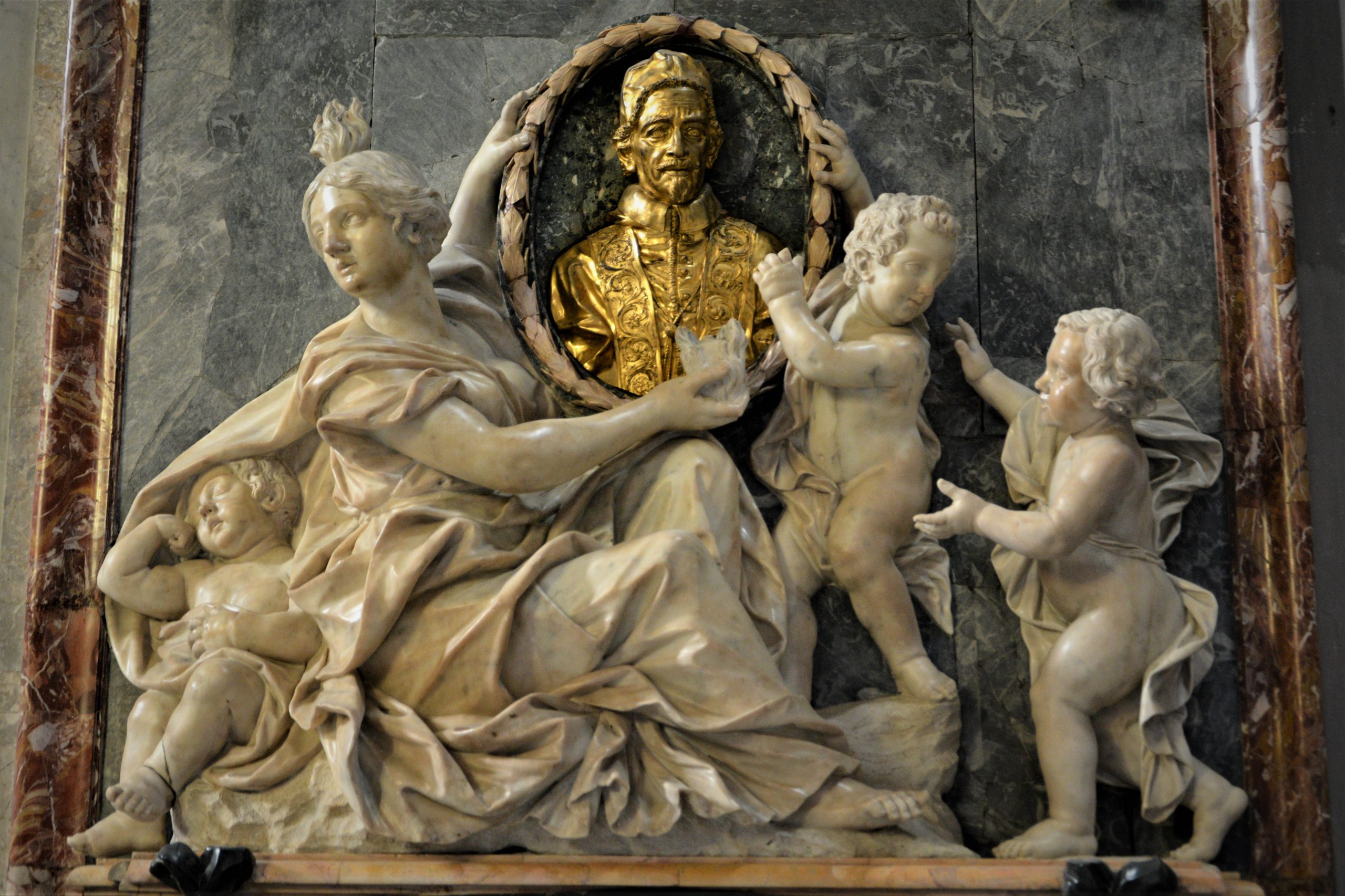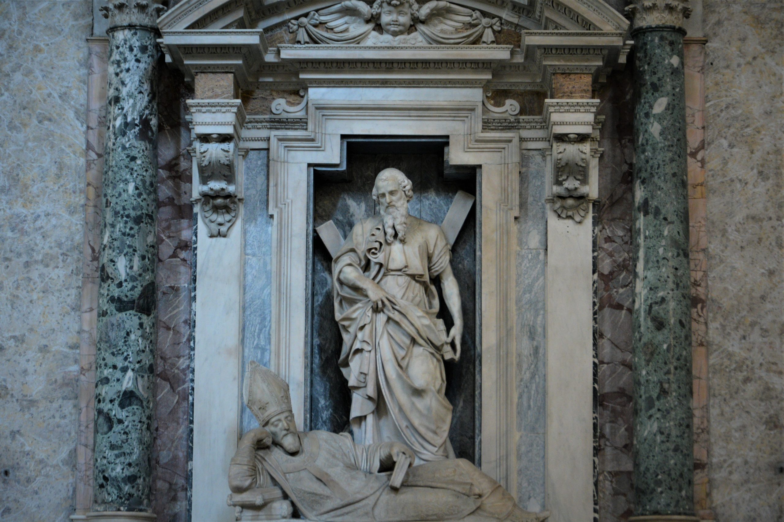 დავდექი თუ არა ტაძრის დასავლეთ კედელთან, გავიფიქრე, მგონი საოცარი სანახაობა მელის-მეთქი – იმდენად მომნუსხველი იყო შესასვლელი! არც მოვტყუვდი: ძალიან ლამაზი ტაძარი აღმოჩნდა კათოლიკური ეკლესიისთვის დამახასიათებელი ძვირფასი და შთამბეჭდავი ნაკეთობებით, მათ შორის მარმარილოსგან გამოთლილი ბარელიეფებით, ბიუსტებით და ძეგლებით.