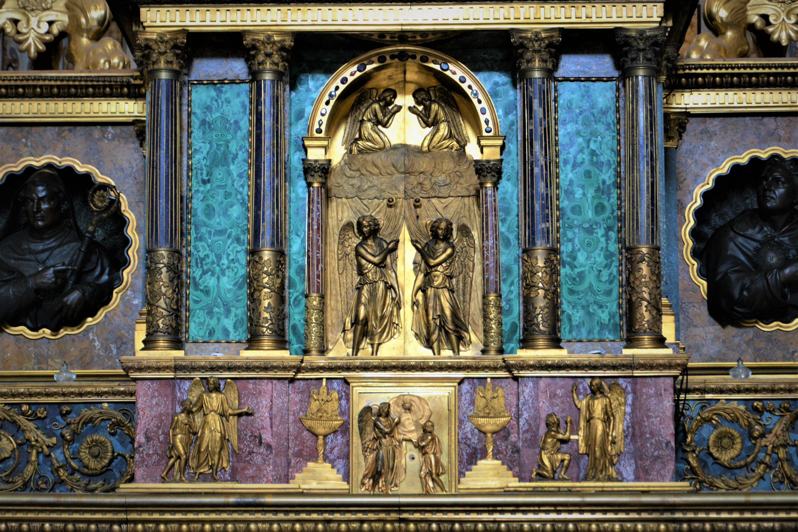 Chiesa del Gesu Nuovo ნეაპოლის ერთ-ერთი უდიდესი სამლოცველოა და ძალიან შთამბეჭდავი. დღეს ის იმ დიდგვაროვანთა საძვალეა, რომლებიც საუკუნეების მანძილზე უხვად სწირავდნენ ოქრო-ვერცხლს. მათი ძღვენი დროთა განმავლობაში შთამბეჭდავ ქანდაკებებში, ვეებერთელა ფერწერულ ტილოებსა და ძვირფას საეკლესიო ნაკეთობებში გარდაისახა და ტაძარშიც თვალისმომჭრელი სიმდიდრე დაგროვდა.