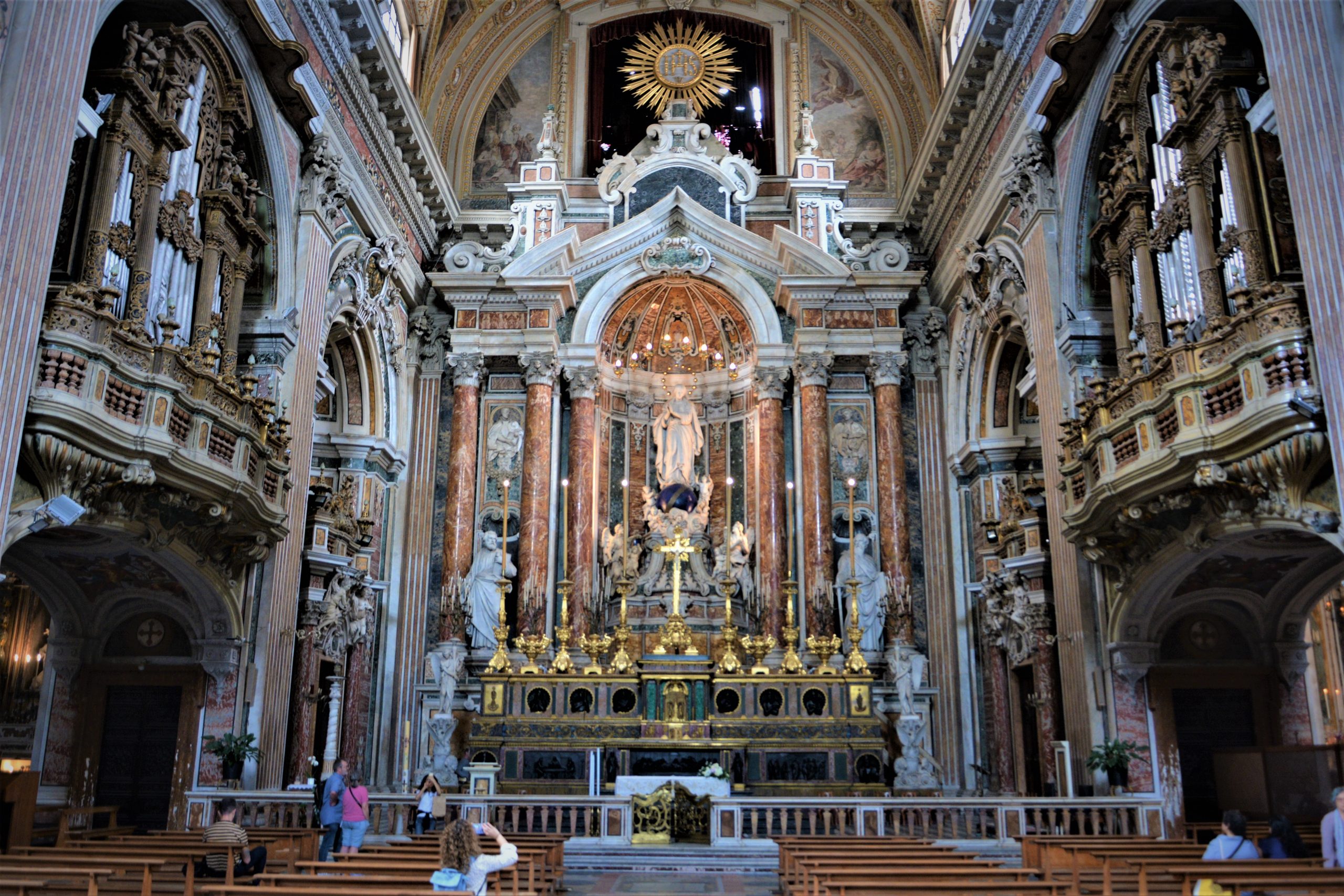 იეზუიტთა ახალ ტაძარს – Chiesa del Gesu Nuovo, რომელსაც Chiesa della Trinita Maggiore – დიდი სამების ეკლესიადაც მოიხსენიებენ, მე და ჩემი მეგობრები ნაპოლი-ინტერის მატჩამდე რამდენიმე საათით ადრე ვესტუმრეთ. იტალიაში გამგზავრებამდე სანსევეროს კაპელის მონახულება მირჩიეს, თუმცა იქ მისულებს ყველა ბილეთი გაყიდული დაგვხვდა. სანსევეროს დათვალიერება სამომავლოდ გადავდეთ და ისტორიულ ნეაპოლში გასეირნება განვაგრძეთ, მალე კი დიდი სამების ეკლესიაც გამოჩნდა.