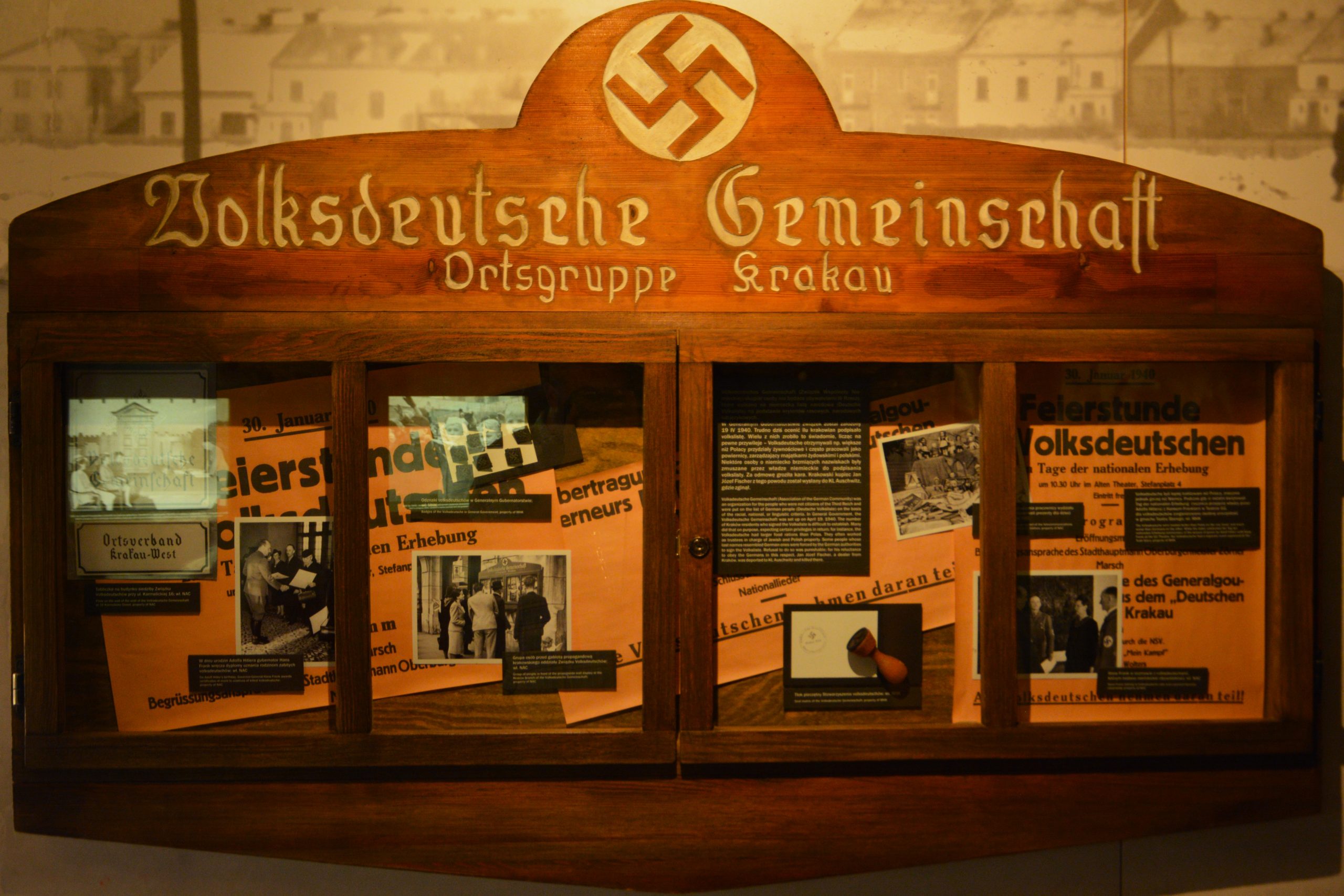 მუზეუმი ოთხსართულიანია და ყველაფერია გამოფენილი, რაც მაშინდელ საშინელებას უკავშირდება: გაზეთები, აფიშები, დოკუმენტები, მუშების პირადი ალბომები და ნივთები, მათ შორის ტანსაცმელი, დროშები, მედლები, ორდენები, ცეცხლსასროლი იარაღები, სხვადასხვა საბუთები, ვიდეომასალა, ნაცისტური სიმბოლიკიანი ალმები…