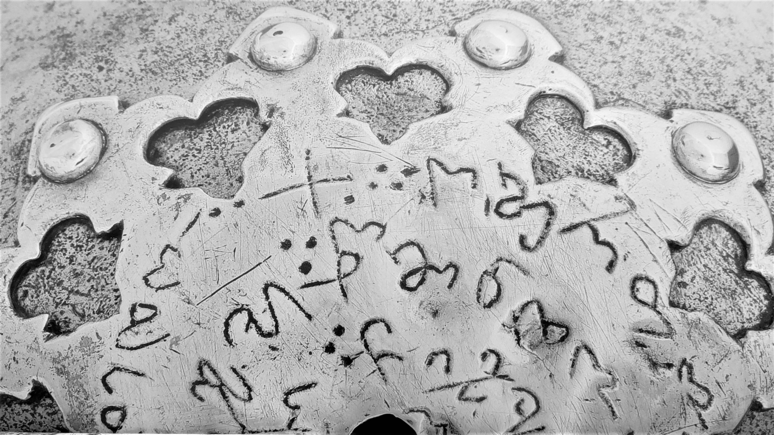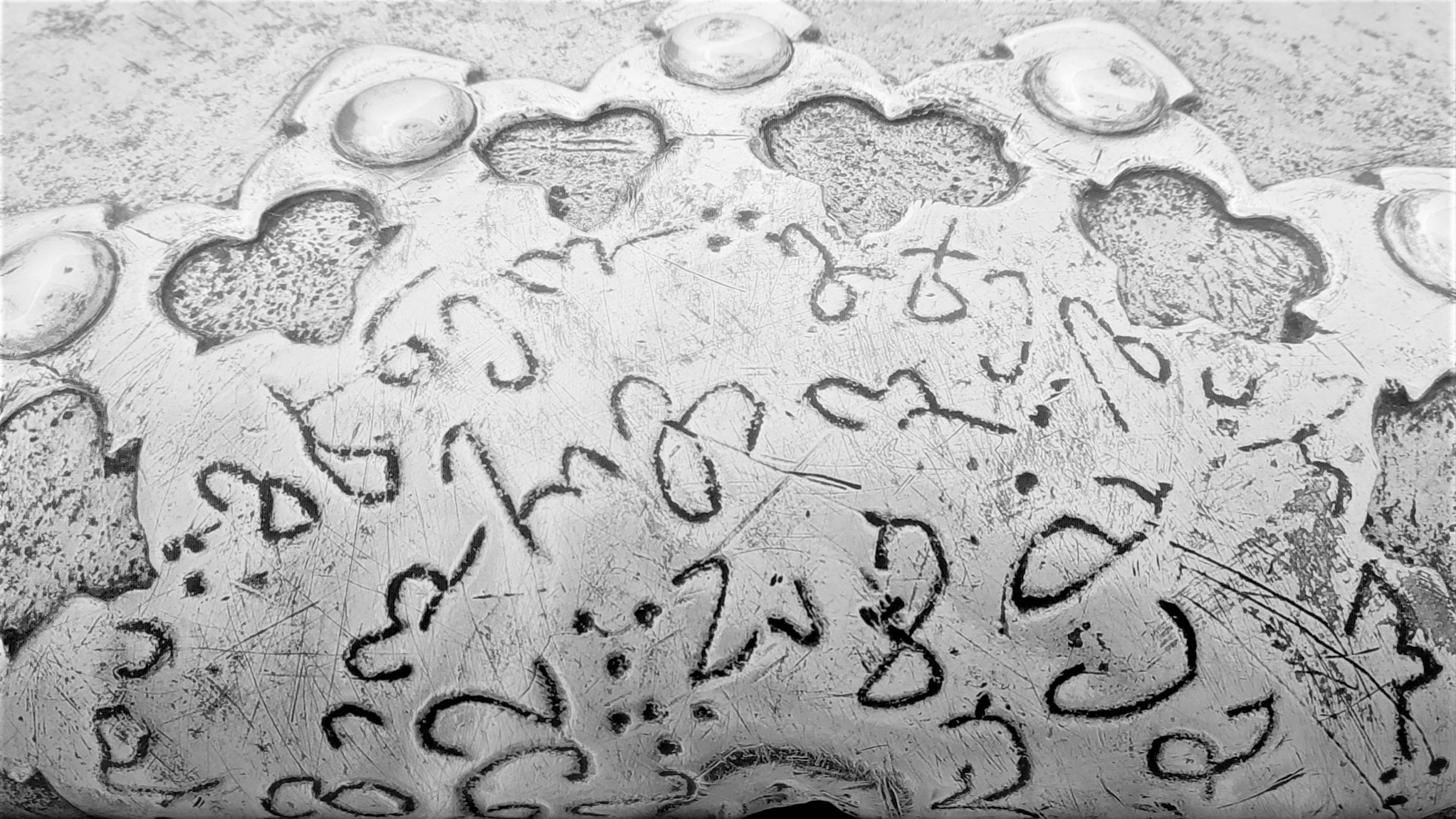 „XIV საუკუნე, სპარსული ან ქართული“ – ასეთი წარწერა ჰქონდა ფოტოს, არადა რომ დავხედე, მასზე აშკარად ქართული ასოები იყო გამოყვანილი. კრშიშტოფ ჩიჟევსკის ტექსტში აღნიშნული იყო, რომ ეს ძალიან იშვიათი ნივთია და მისი მსგავსი სულ რამდენიმეა შემორჩენილი, მათ შორის ერთ-ერთი საქართველოშია, ცაგერის ისტორიულ მუზეუმში.