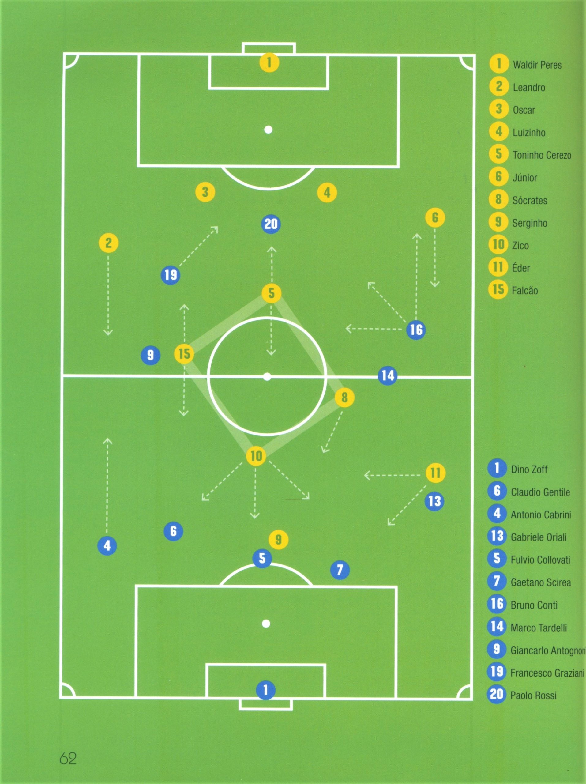 თამაშის დასრულებისთანავე თექვსმეტ ფეხბურთელს გაუცვლია მაისური: კლაუდიო ჯენტილეს – ზიკოსთან, ანტონიო კაბრინის – ლუიზინიოსთან, ჯუზეპე ბერგომის – სოკრატესთან, გაბრიელე ორიალის – ედერთან, გაეტანო შირეას – ტონინიო სერეზოსთან, ბრუნო კონტის – ფალკაოსთან, ჯანკარლო ანტონიონის – ლეანდროსთან, ფრანჩესკო გრაციანის კი ოსკართან.