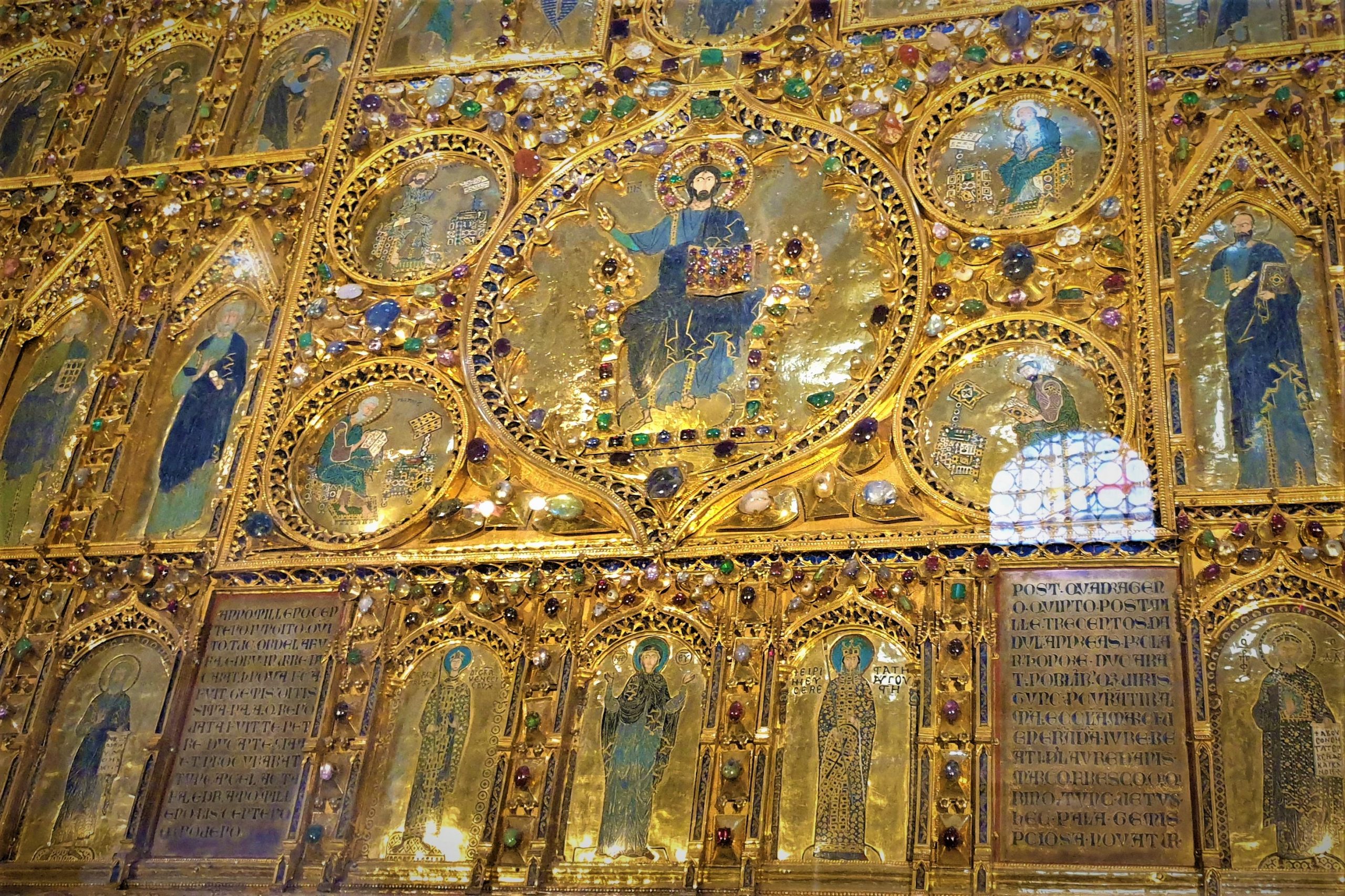 სან მარკოს მნახველთა გვარიანად დიდ რიგში ჩადგომამდე პირადი ნივთები საგანგებო დარბაზში შეგვანახინეს – ტაძარში ხომ აუარება საგანძური ინახება, უმეტესობა ჯერ კიდევ კონსტანტინოპოლიდან გაზიდული! ოქრო-ვერცხლის ნაკეთობები და თვალ-მარგალიტით შემკული სინები და თასები ხელის გაწვდენაზე კია, მაგრამ თითოეულს ყურადღებით დარაჯობენ, მათ შორის ვიდეოკამერით, და ამიტომ ხელმრუდობა გამორიცხულია.