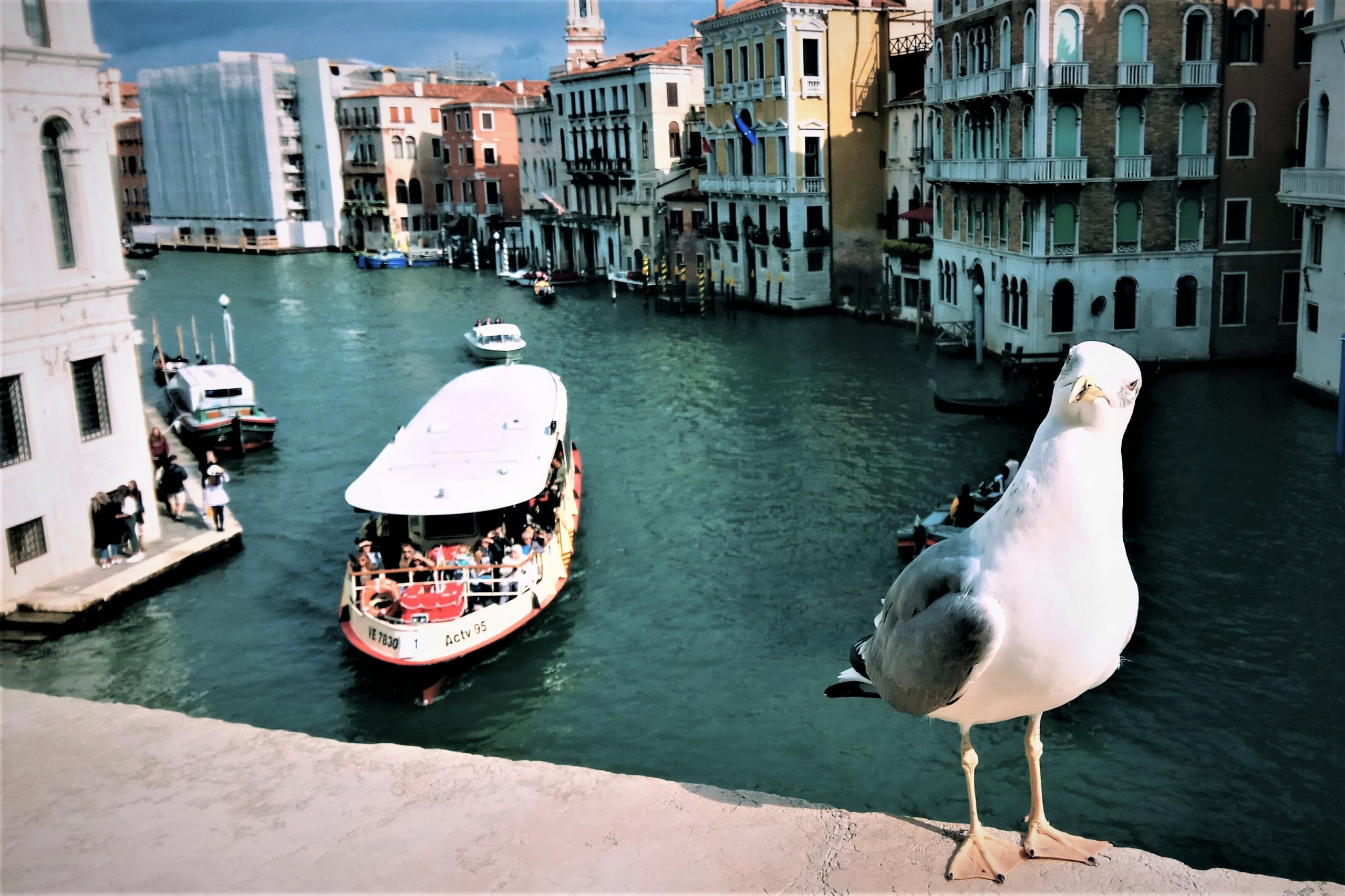 მე და ნინო რიალტოს ვენეციაში გატარებულ ბოლო დღეს ვესტუმრეთ და სანამ სამახსოვრო ფოტოებს გადავიღებდით, რამდენიმე წუთიან რიგშიც ვიდექით – იქაურობა, ისევე როგორც მთლიანად ქალაქი, ტურისტების ნაკლებობას ნაღდად არ უჩივის. ხალხი კი არა, მოაჯირთან დამდგარს თოლიაც კაი შინაურივით ამომიდგა და მეც შანსი ხელიდან არ გავუშვი – მტკვრისპირელი თოლიებისგან მოკითხვა გადავეცი და შემდეგ, ბურბუშელათი რომ გავუმასპინძლდი, სამახსოვრო ფოტოც მერგო.